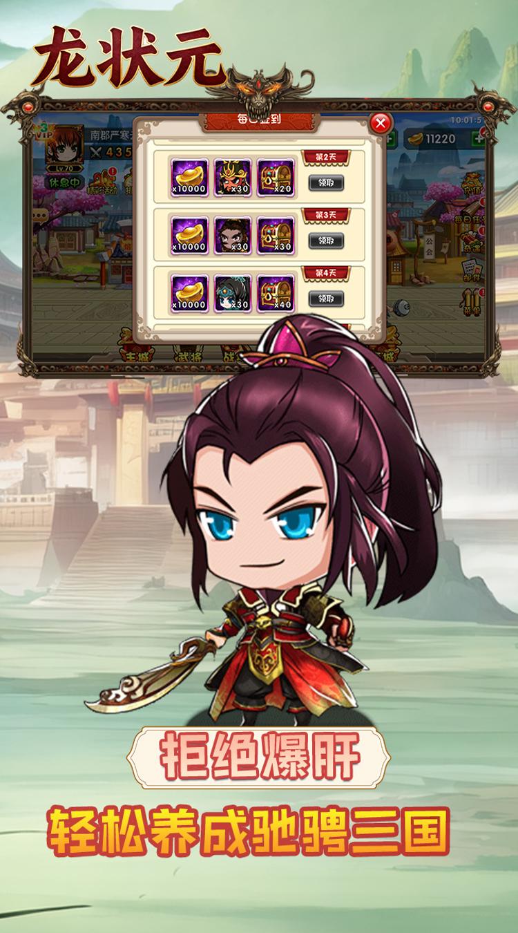 1:上线即领丰厚物资:进入游戏,立即领取银币10000、元宝500,以及强化石、进阶丹、升阶石等实用道具,助你冒险快人一步。还有全新直升70级道具卡,使用后瞬间直升70级。 2:开服狂撒福利:开服狂欢期间,每日登录都能领取充值卡,累计收获万元充值卡。,福利拿到手软。 3:充值折扣超划算:首充、续充低至0.05折,充值比例1:10,花小钱,得大资源。开局便能直升70级,快速融入游戏。 4:轻松打造无敌阵容:凭借海量福利,轻松培养武将、打造顶级装备,组建称霸三国的无敌阵容。叫上好友一起玩,并肩作战,在三国世界大杀四方!
